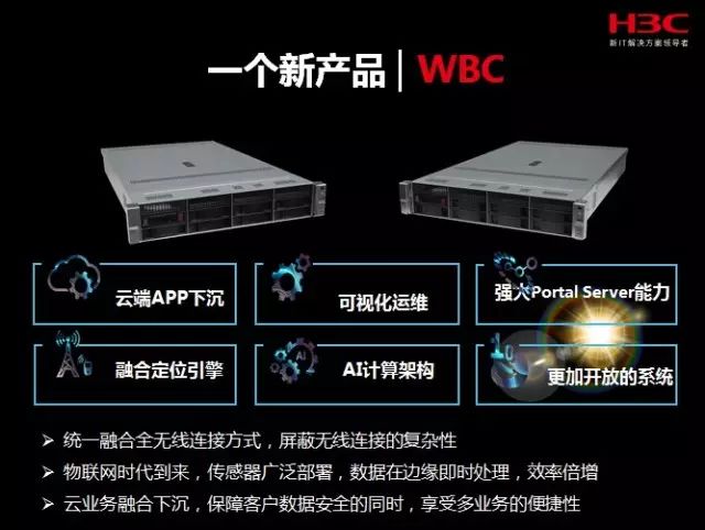 新華三在此次大會上,正式對外發(fā)布了WBC(Wireless Beneath Cloud Controller無線多業(yè)務(wù)控制器),作為新華三無線領(lǐng)域的重磅新品面向市場,融合多種無線技術(shù),具備六大特性:云端APP下沉、可視化運維、強大Portal Sever能力、融合定位引擎、AI計算架構(gòu)和更開放的系統(tǒng)。面對萬物互聯(lián)時代,傳感器廣泛部署,WBC不僅可以實現(xiàn)數(shù)據(jù)在邊緣即時處理,還可以使得效率倍增;此外,WBC還將運維、認證、位置大數(shù)據(jù)、SaaS應(yīng)用等業(yè)務(wù)下沉到網(wǎng)絡(luò)中,在保障客戶數(shù)據(jù)安全的同時,更享受多業(yè)務(wù)處理的便捷性。