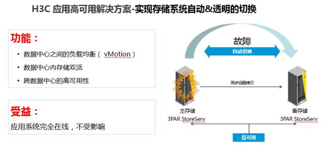 對于這一點(diǎn),新華三推出了應(yīng)用高可用解決方案。這一方案的重點(diǎn)就是實(shí)現(xiàn)存儲(chǔ)系統(tǒng)自動(dòng)、透明的切換。通過數(shù)據(jù)中心之間的負(fù)載均衡、數(shù)據(jù)中心內(nèi)存儲(chǔ)雙活、跨數(shù)據(jù)中心的高可用性等功能,讓金融應(yīng)用系統(tǒng)可以忽略外部故障影響,完全在線。