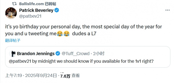 今日,詹寧斯甚至直接發(fā)推約戰(zhàn)貝弗利:“今晚就該知道你敢不敢和我單挑了吧?”