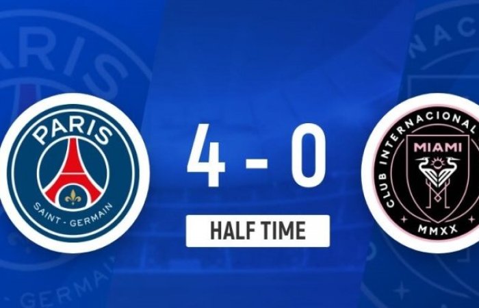 上半場(chǎng)比賽結(jié)束,巴黎圣日耳曼暫時(shí)4-0領(lǐng)先邁阿密?chē)?guó)際。