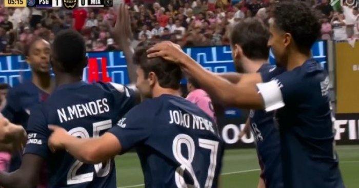 巴黎領(lǐng)先!若奧-內(nèi)維斯破門(mén),維蒂尼亞助攻!第6分鐘,維蒂尼亞主罰任意球開(kāi)出到后點(diǎn),若奧-內(nèi)維斯頭球沖頂破門(mén),巴黎圣日耳曼1-0邁阿密?chē)?guó)際!↓