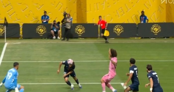 杜埃造阿維萊斯烏龍!第45分鐘,杜埃右路下底傳中,皮球打在阿維萊斯身上折射,隨后飛進(jìn)自家大門(mén),巴黎圣日耳曼3-0邁阿密?chē)?guó)際!↓